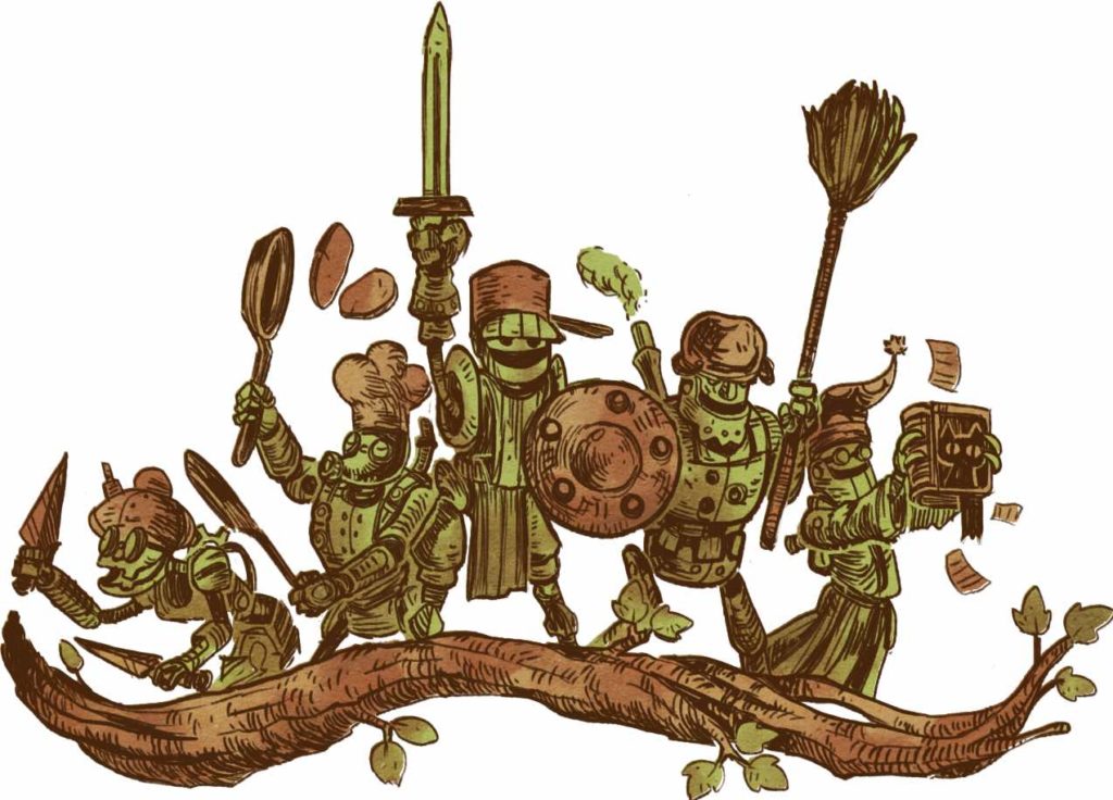 Armilly e Copernica sono le prime protagoniste con cui faremo conoscenza mentre si addentreranno nel folto del bosco alla ricerca di funghi. La prima è avventata e avventurosa, sempre pronta a cacciarsi in qualche guaio, mentre la seconda – più assennata e giudiziosa – ha il compito di tenere in riga l’amica, e possibilmente anche lontano dai guai. Purtroppo questo obiettivo viene immancabilmente mancato quando, tornando nel villaggio dopo aver svolto la prima missione, mero tutorial di base, trovano le abitazioni in fiamme, con tutta la gilda dei cavalieri scomparsa. Il duo si unisce al pigro Galeo e inizia quindi l’avventura che vedrà il nostro trio alla ricerca dei cavalieri scomparsi e alla soluzione dell’affascinante storia di SteamWorld Quest: Hand of Gilgamech.