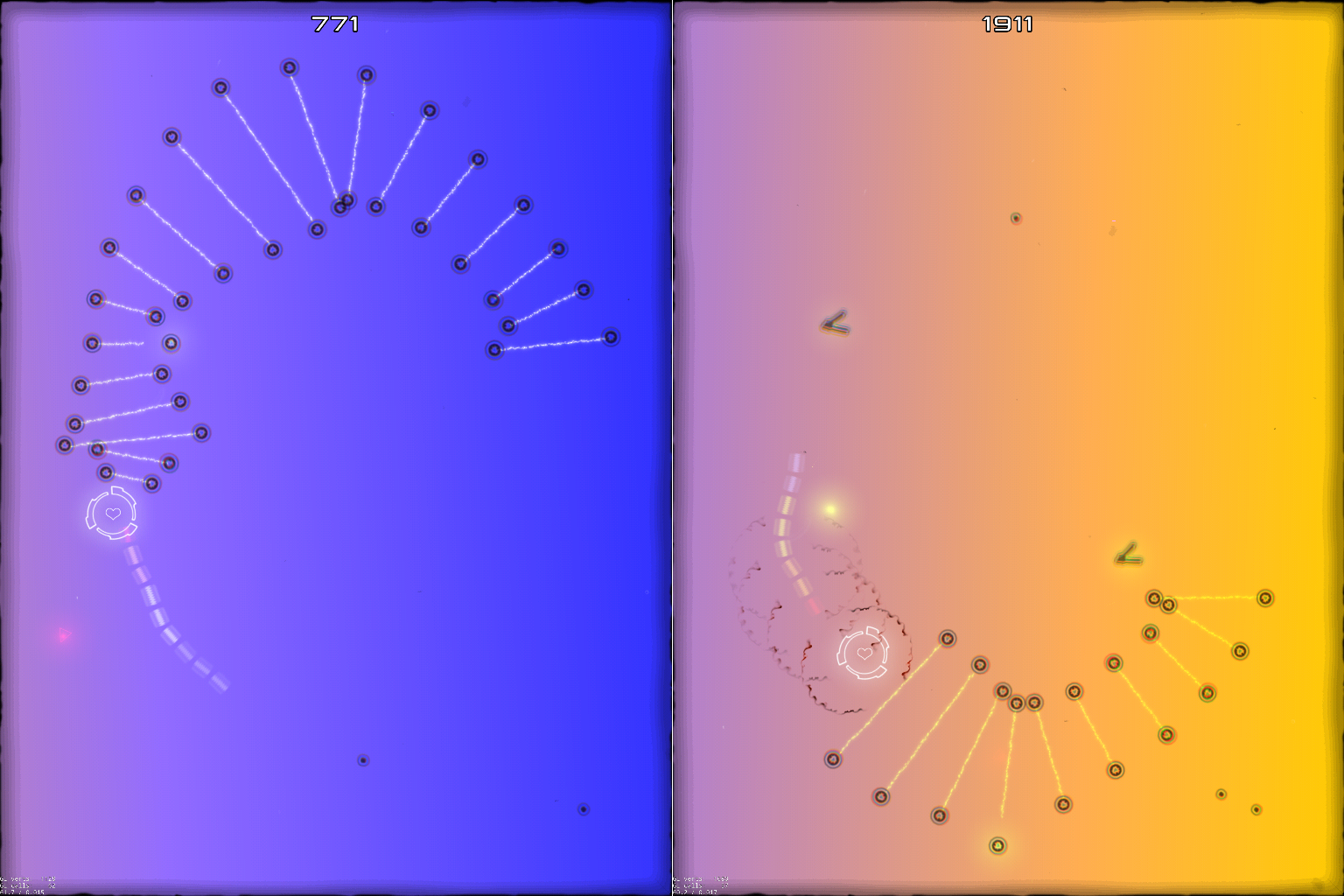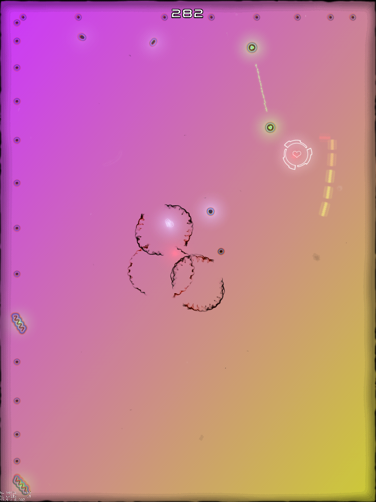 Fin dai primissimi momenti si capisce che Syn è un gioco sincero e immediato, capace di portare il giocatore nel suo mondo, quasi all’istante. Il tutorial ci spiega come sia sufficiente muovere il dito sullo schermo per catturare e liberare gli aminos e, nel contempo, spezzare i legami dei malcrobes, senza mai interrompere il contatto con il touch. Le meccaniche semplici e intuitive, fanno si che si entri subito in partita, all’inizio le situazioni sono banali, poi, col passare dei minuti la difficoltà si farà seria e ben presto ci ritroveremo a fare i conti con l’intera area di gioco infestata e un sempre minore spazio per i nostri movimenti. Al termine della partita faremo i conti con i risultati, il numero di aminos collezionati sarà spendibile in upgrade, dal più classico “scudo” alla più fantasiosa bomba a coda che una volta innescata produrrà una reazione a catena distruggendo tutti i malcrobes nel suo raggio d’azione. Insomma, un sistema di gioco molto intuitivo e immediato che però richiede una buona dose di destrezza. Syn è un gioco “universale”, in grado quindi di funzionare sia su telefoni che tablet, tuttavia durante le numerose prove il miglior consiglio che possiamo darvi è quello di giocare su iPad, lo schermo ridotto di un telefono infatti, non permette la stessa esperienza di uno schermo da otto o dieci pollici.
