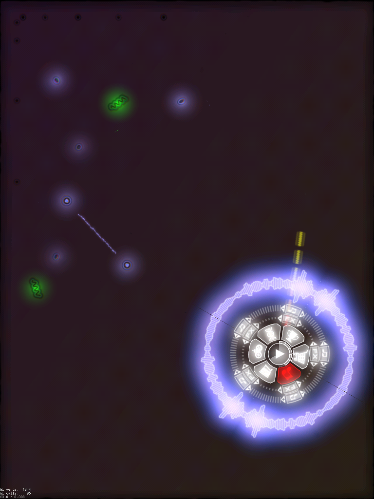 Grafica minimalista, ridotta al dettaglio, proprio come ci si aspetterebbe guardando un vetrino con un microscopio. Ciò che piace però di Syn non è tanto l’aspetto, quanto la fluidità e la rapidità con cui si muovono gli oggetti a schermo, caratteristiche importanti per un titolo su iOS dove il gioco in mobilità è sicuramente la realtà più vicina. Nelle prime fasi saremo guidati da Synthia, una voce femminile che ci introdurrà nel sistema Syn spiegandoci, senza dar sfogo alla minima emozione, i rudimenti di gioco; il resto dei suoni sono campionamenti semplici ma certamente adatti alla situazione.
