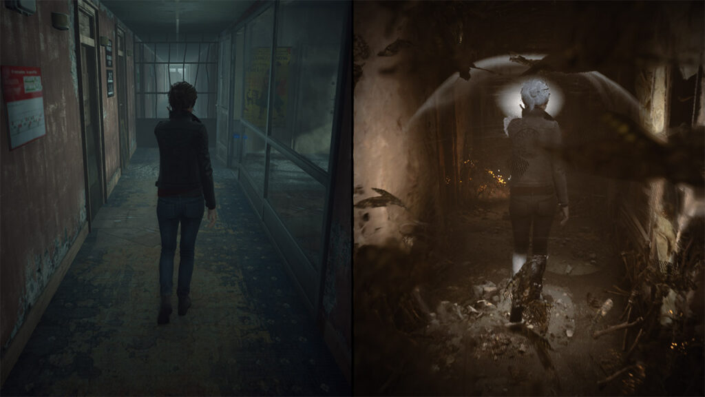 Certamente è possibile trovare dei richiami e degli omaggi al titolo Capcom ma è soprattutto all’horror Konami che The Medium sembra volgere lo sguardo, forse grazie alle atmosfere grigie, alla doppia dimensione e alle fasi “al buio” in cui una torcia ci permetterà di farci largo tra i tetri corridoi dell’imponente resort.