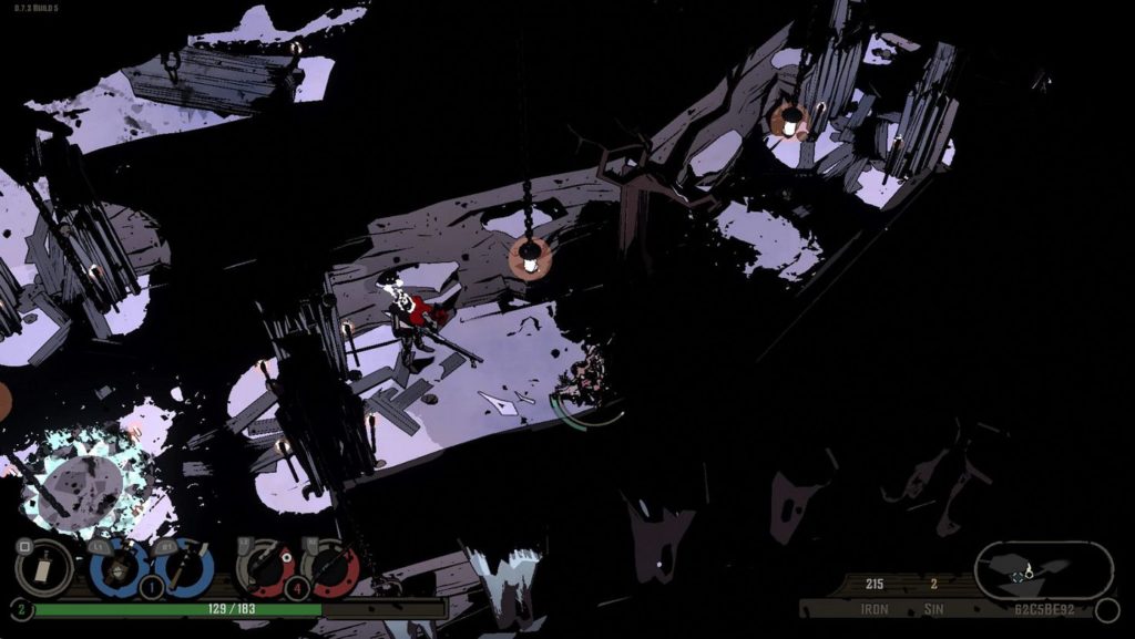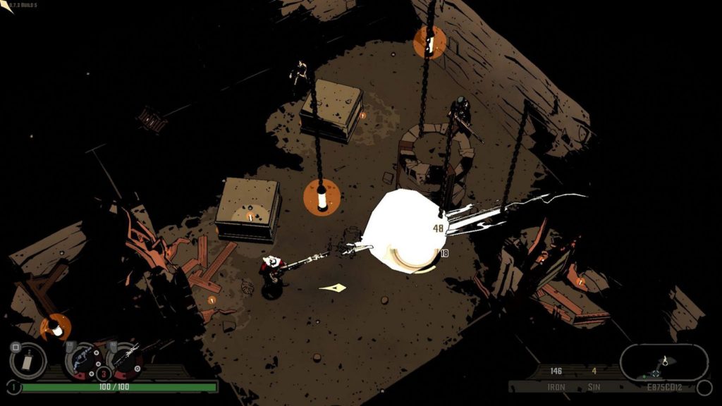 Detto dei difetti evidenti nella gestione della telecamera e dell’oltranzismo nei concetti rougelike applicati da Raw Fury, non si può non rilevare che il gioco abbia anche delle gravi lacune a livello di routine e di level design. I bug incontrati nella prova sono stati svariati e ci hanno costretto ad altrettanti riavvi (immaginate cosa voglia dire, per un gioco in cui si ricomincia sempre da capo, doverlo fare anche quando non ve lo siete meritato). Al di là del grazioso e ben riuscito design fumettistico non c’è nulla di più nella mappa, che è sì generata casualmente, ma risulta davvero troppo essenziale. Il dedalo di corridoi e stanze che si forma è ripetitivo e sconsolatamente vuoto, mentre gli effetti buio/luce alla lunga possono annoiare. Il porting su console, che pure avrebbe potuto rendere bene in un twin stick shooter, risulta minimo, se non per una funzionalità di mira legata al touchpad del controller che si rivela ben presto imprecisa ed inutilizzabile.