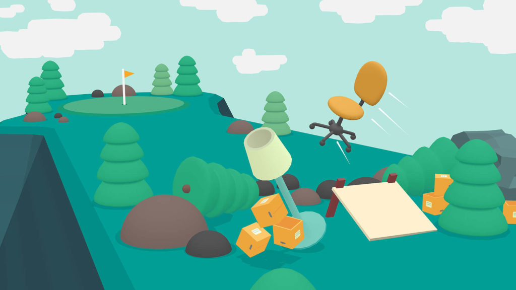 La modalità campagna per giocatore singolo è caratterizzata da tanti livelli brevi, solitamente orientati su una diversa tematica o tipologia di interazione con l’ambiente circostante. È così che ci si ritrova a raggiungere la bandierina muovendo una mucca, guidando un’auto o magari pilotando un barile pieno di esplosivo pronto a esplodere. Molti livelli propongono un qualcosa di follemente differente dai precedenti che – nella maggior parte dei casi – ruota attorno alla meccanica base di un gioco di golf (semplificata per l’occasione): caricare e direzionare il movimento tramite un indicatore presente a schermo. Un indicatore così semplice e poco articolato assume però un ruolo speciale in What the golf? e diviene capace di veicolare tipologie di interazione davvero originali.