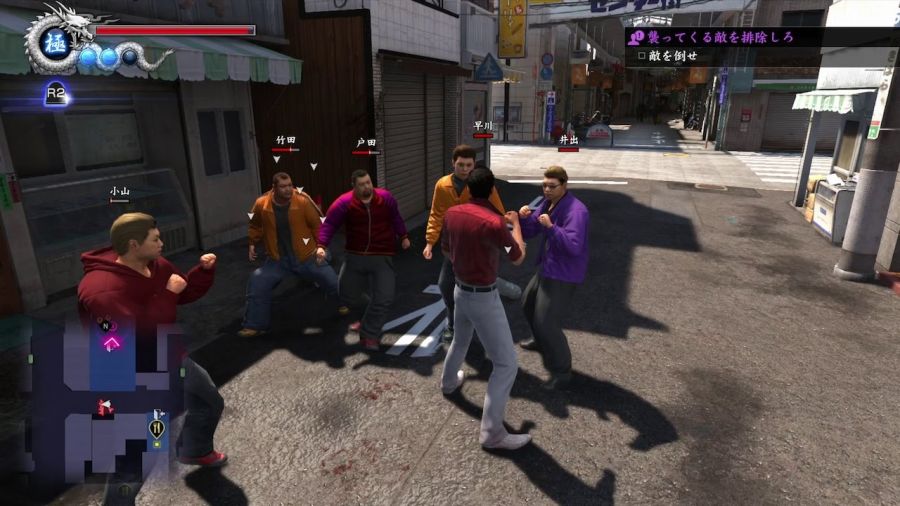 I combattimenti sono sempre stati il fiore all’occhiello della serie Yakuza. In questo ultimo capitolo si ha finalmente la sensazione che l’area di ogni scazzottata non sia delimitata dalle solite barriere di persone o auto create ad hoc, dal momento che tutti gli scontri avvengono nel bel mezzo della strada, a volte anche mentre passano le auto. In aggiunta gli antagonisti sono visibili sulla mini mappa e, a parte il logo che compare sullo schermo indicando chi si sta per affrontare, non c’è soluzione di continuità tra l’esplorazione e il combattimento, caratteristica che rende molto più fluida e immersiva l’esperienza di gioco.
