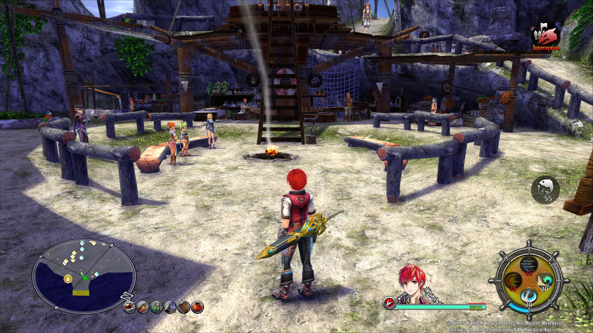 Con il passare del tempo sull’Isola tutti gli abitanti si apriranno l’uno con l’altro, rivelando le loro origini e i loro ceti di appartenenza. Per un motivo o per l’altro, i passeggeri della Lombardia vengono da regioni differenti, e alcuni di questi interessanti personaggi sono dei nobili, altri dei guerrieri, altri ancora malfattori. Tali differenze saranno comunque tralasciate in vista dell’unico obiettivo in comune: fuggire dall’isola di Seiren. Ogni naufrago fornirà inoltre supporto durante le Interceptions e le Suppressions, attivando un’abilità che conferirà bonus al party: Licht, che di professione è dottore, sarà in grado di rigenerare gli HP del party durante questi scontri, mentre personaggi come Dogi attaccheranno direttamente i nemici. Fondamentalmente, allargare il più possibile il villaggio fornirà diversi profitti, come il poter craftare equipaggiamenti di vario tipo, dar vita a una fattoria per realizzare ingredienti e migliorare l’umore dei sopravvissuti. Al villaggio sarà infine presente una bacheca di annunci, ove è possibile accettare delle quest secondarie, volte sia a migliorare il sostentamento del villaggio che a soddisfare le richieste di un personaggio in particolare. Esaudire le richieste degli abitanti farà sì che la stima e fiducia nei confronti di Adol salga e ciò comporterà una maggiore compattezza di gruppo, permettendo agli abitanti di aprirsi con Adol (oltre a essere una delle condizioni necessarie per assistere al finale positivo). Per concludere, il Castaway Village è un vero e proprio centro operativo dove il giocatore trascorrerà parecchie ore di gioco al fine di potenziarsi e migliorare i rapporti all’interno del villaggio, dovendone anche gestire l’andamento.