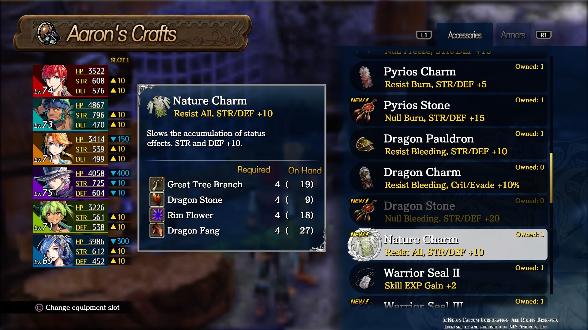 Non c’è molto da dire invece sul sistema di crescita e di sviluppo dei membri del party: la formula è una tra le più classiche, che vede il semplice level up come sistema per far diventare più forte il personaggio, così come fargli apprendere nuove tecniche, posto che il personaggio in questione sia attivo in battaglia. Fortunatamente i sei personaggi che saranno disponibili nel party hanno velocità di movimento e stili di combattimento molto diversi l’uno dall’altro, permettendo al giocatore di sbizzarrirsi. Se Adol è un personaggio abbastanza bilanciato da tutti i punti di vista, il forzuto pescatore Sahad compensa la sua scarsa velocità di movimento con una forza fisica devastante e con delle possenti tecniche a corto raggio. D’altro canto ci sono anche personaggi come il tiratore Hummel, rapido e capace di colpire a distanza con la sua arma da fuoco, a scapito di una debole difesa. I personaggi sono divisi in 3 categorie: Slash, Pierce e Strike. Ogni tipologia di attacco è efficace su certi nemici e debole su altri.