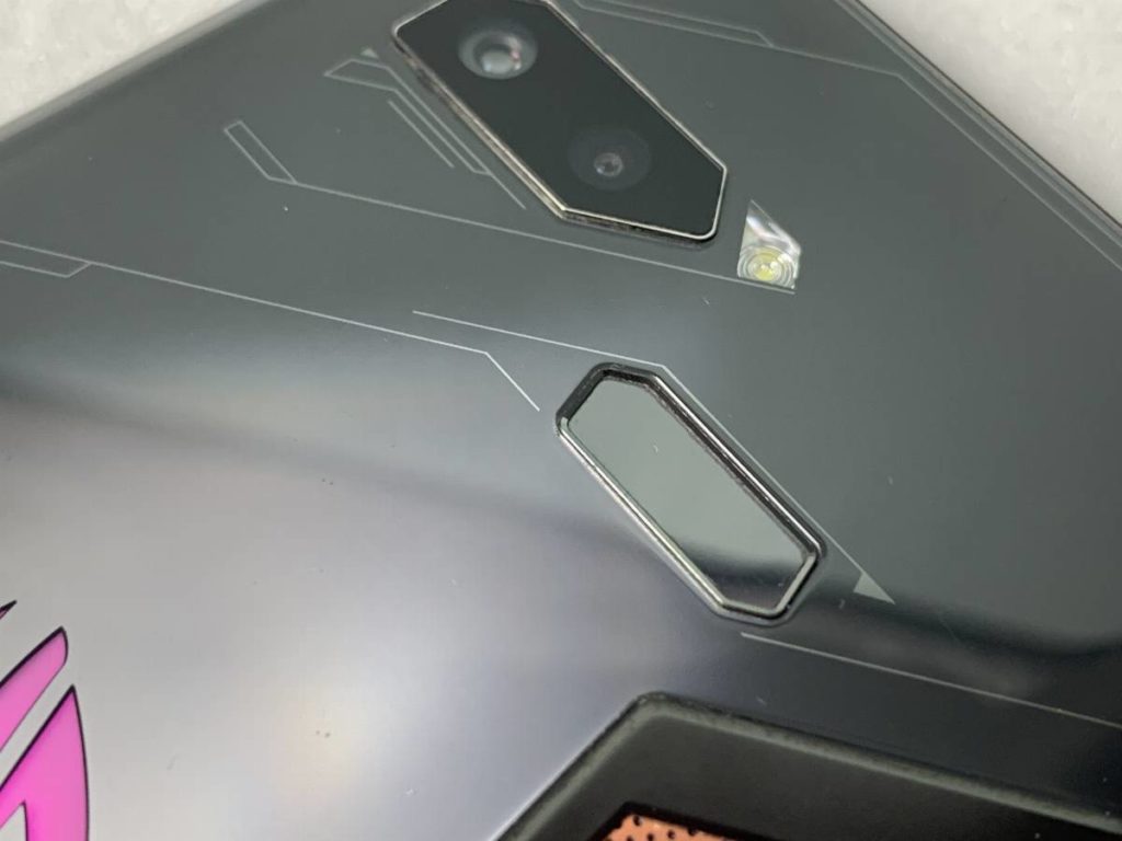 Nonostante lo smartphone sia già appariscente di suo, nel mezzo della scocca posteriore spicca l’occhio ROG, ovviamente, come in ogni prodotto da gaming che si rispetti, dotato di illuminazione RGB che si andrà ad attivare qualora attiveremo la Modalità X di di cui vi parleremo più avanti. In alto a sinistra trova spazio la doppia fotocamera dotata di due sensori da 12 Mpx in grado di scattare foto e video grandangolari e registrare video alla risoluzione massima di 4K. Sotto di esso troviamo il sensore di impronti digitali in grado di sbloccare Asus ROG Phone in soli 0,3 secondi. Sul posteriore è presente inoltre una piccola griglia di aerazione, la cui funzione è quella di smaltire il calore generato dal SOC.