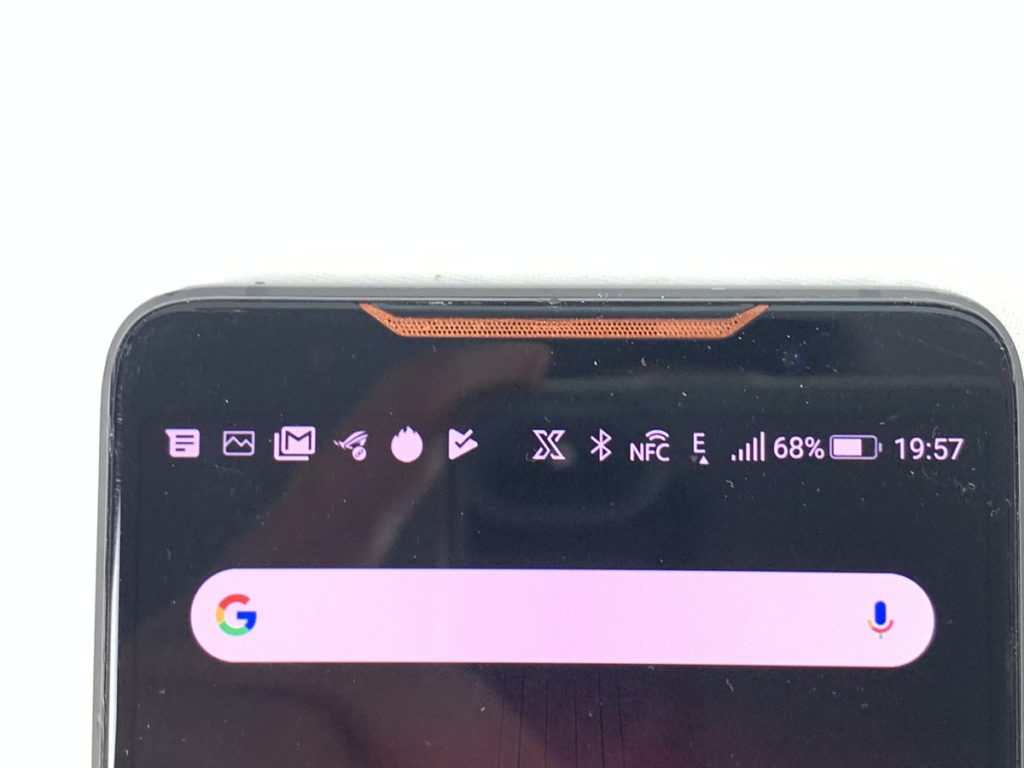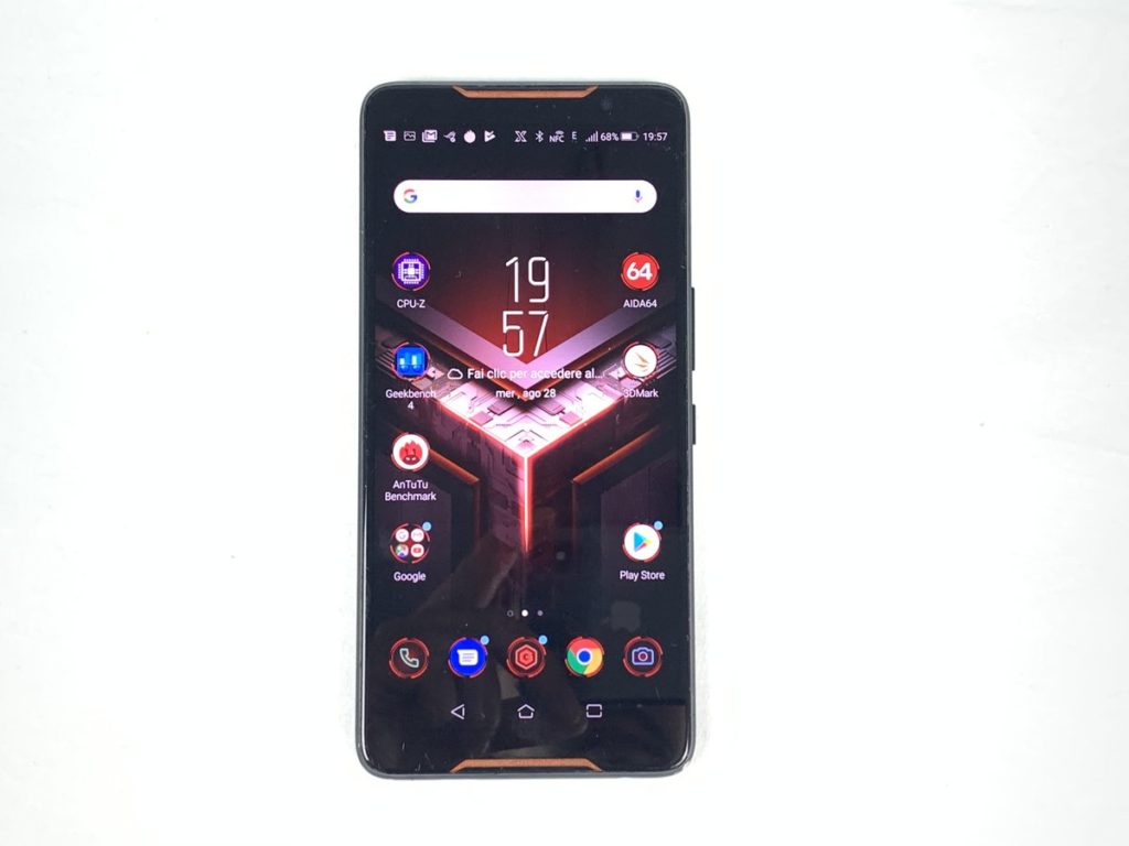 Il display, il punto forte di questo smartphone di Asus, è di tipo AMOLED, in grado di offrire dei neri assoluti e contrasti ben marcati. Il rapporto di contrasto è di 100.000:1 con un picco di luminosità di 550 nits e supporto alla gamma cromatica DCIP3. La risoluzione è FHD+, ovvero 2160×1080 pixel, con frequenza di aggiornamento di 90 Hz e con un tempo di risposta di solo 1 ms. Il display di Asus ROG Phone supporta inoltre lo standard HDR 10 in modo da offrire dei colori e contrasti più naturali, ovviamente questo accadrà nei contenuti compatibili con HDR. Il display inoltre offre anche un filtro Bluelight in modo da ridurre la luce blu per la salvaguardia degli occhi. Troviamo anche il supporto ad always-on in modo da avere le notifiche sempre sott’occhio senza dover attivare lo smartphone. Il pannello touch è di tipo capacitivo con supporto a 10 tocchi e funzionerà anche mediante l’utilizzo di guanti. Il vetro che ricopre lo schermo è il Corning Gorilla Glass 6, estremamente resistente agli urti, ma sensibile ai graffi.