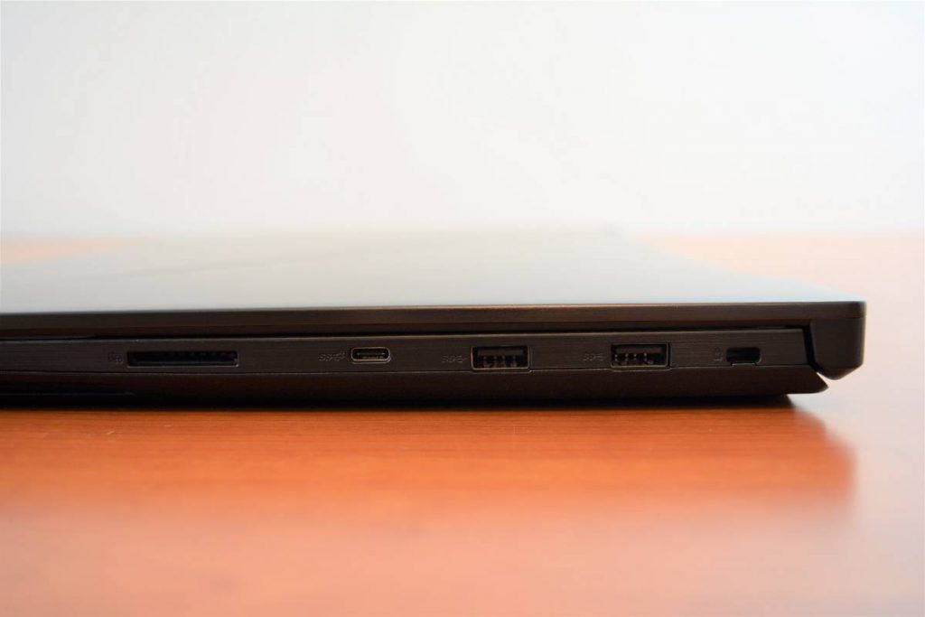 A livello di connettività ASUS GL703GM è ben fornito e non si fa mancare nulla. Sul lato sinistro troviamo l’attacco per il caricabatterie, una porta LAN Gigabit, un’uscita video HDMI e una mini Display Port, due USB 3.1 e il jack da 3,5 mm per le cuffie con microfono. Sul lato destro invece troviamo due porte USB sempre 3.1, una porta USB type C e il lettore di carte SD.