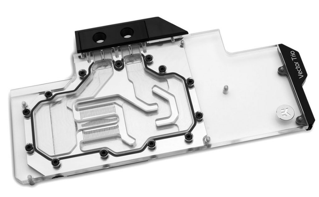 I modelli della serie EK-Vector Trio RTX sono compatibili con i rispettivi backplate EK-Vector Trio RTX che raffreddano passivamente chip grafico e VRM nella parte posteriore del PCB. Il backplate delle EK-Vector Trio RTX è in alluminio ad alta qualità, e viene distribuito in due varianti nickelate e anodizzate in nero. I water block della serie EK-Vector Trio RTX non sono compatibili con backplate di fabbrica.