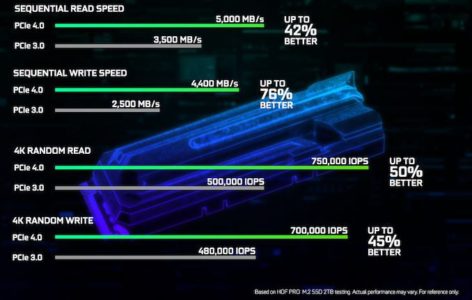 Nel Computex 2019 sono state annunciate le nuove CPU Ryzen 3000 e le piattaforme X570 compatibili con la nuova generazione PCIe 4.0. Questi SSD compatibili con la nuova generazione PCIe 4.0 potranno sfruttare 4 linee fisiche presenti nello slot M.2 della piattaforma AMD X570 e rispetto ai normali slot M.2 compatibili PCIe a 4 linee la bandwidth teorica passa da 4000MB/s a 8000MB/s. La nuova generazione PCIe 4.0, infatti, aprirà la strada a SSD ancora più preformanti, con un raddoppio teorico delle prestazioni.