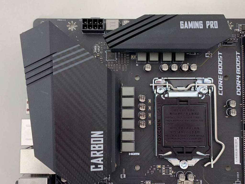 Il socket è circondato da due heatsink in metallo non collegati tra di loro, la cui funzione è quella di dissipare le varie fasi. L’heatsink di sinistra copre anche le porte I/O ed è rivestito da della pellicola di carbonio che dona un look più aggressivo. Entrambi gli heatsink sono estremamente facili da rimuovere, e sotto di essi possiamo trovare le 10 fasi di alimentazione di MSI B360 Gaming Pro Carbon.