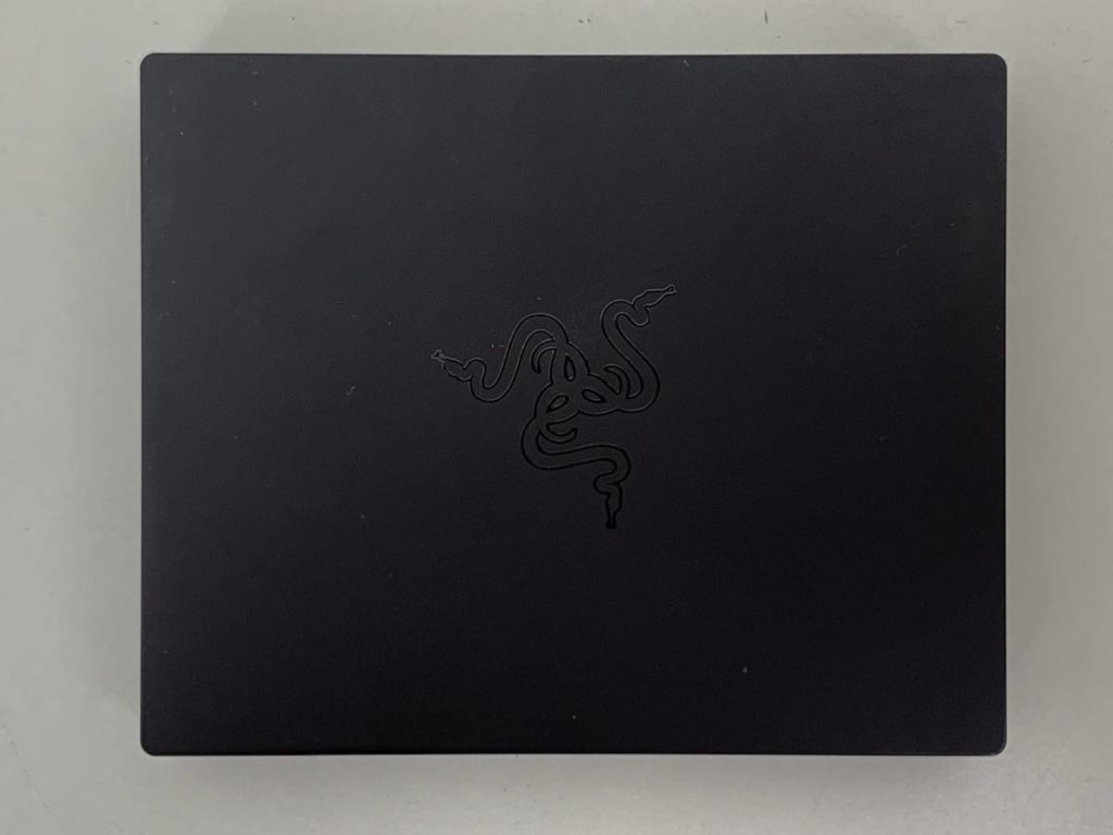 Entrambe le facciate laterali non presentano niente e sono completamente nere. Nella facciata superiore è presente l’iconico logo Razer inciso in rilievo. In quella inferiore troviamo un pad antiscivolo che copre l’intera superficie, in modo da aumentare così l’attrito con la scrivania e renderlo immobile.
