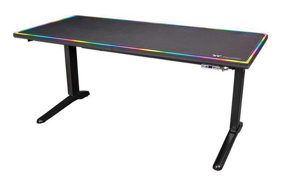 Il Level 20 BattleStation RGB Gaming Desk è il nome pomposo che Thermaltake ha voluto destinare al proprio nuovo tavolo da gioco orientabile in altezza. La superficie interamente ricoperta da un gigantesco mousepad ed una striscia luminosa con 16.8 milioni di colori da gestire via software. I giocatori potranno scegliere l’effetto di luce desiderato attraverso il gaming engine iTAKE gaming engine e sincronizzarlo con prodotti TT RGB PLUS. Il Level 20 BattleStation RGB Gaming Desk offre anche l’ulteriore funzionalità di poter selezionare elettronicamente l’altezza del proprio tavolo per posizioni sedute o in piedi.