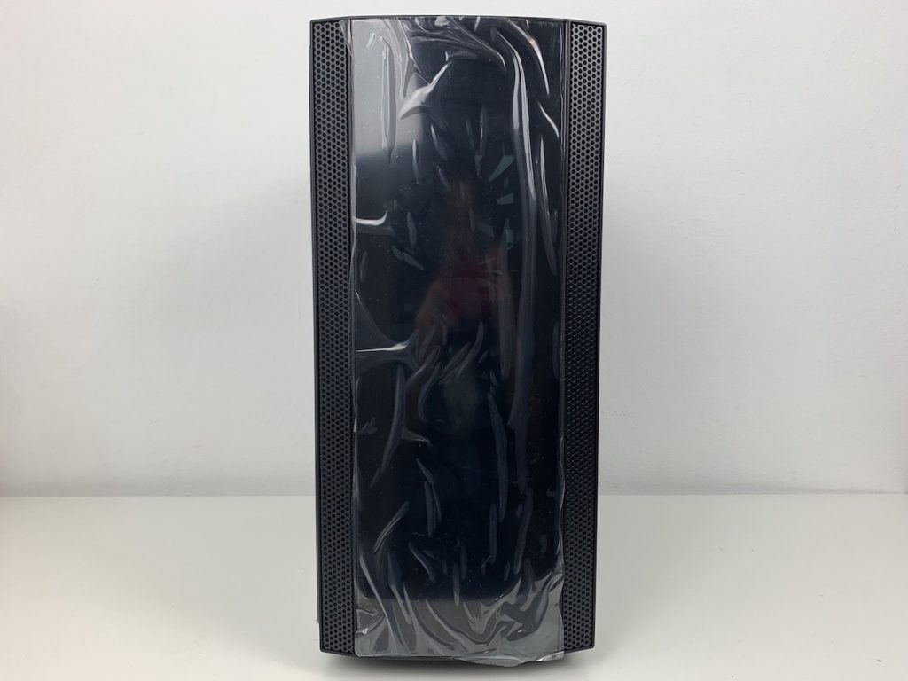 La parte frontale di Thermaltake Versa J25 TG è caratterizzata da una mesh di plastica, dove al centro troviamo una finestra di plexiglas trasparente che permette di vedere le ventole RGB in dotazione, mentre ai lati troviamo una griglia a nido d’ape che serve per far pescare aria alle ventole frontali. L’intera mesh è estraibile: basterà tirare con forza per rimuoverla dal suo alloggio. Una volta rimossa sarà possibile accedere alle ventole in modo da sostituirle o pulirle.