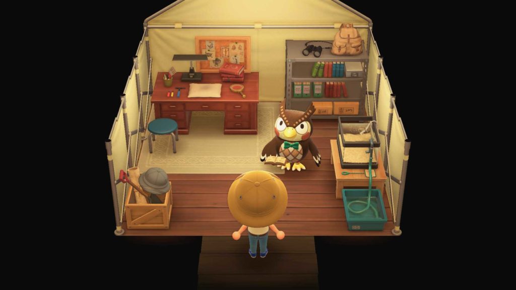 Una volta completato il tutorial, dovrete portare a Tom Nook almeno 5 esemplari diversi di pesci e insetti, catturandoli utilizzando la retina, che serviranno a convincere Blatero a trasferirsi sull’isola per aprire il museo. Consegnati gli oggetti a Tom Nook, dovrete scegliere una posizione su cui costruire la tenda in cui si trasferirà Blatero. Giunto sull’isola e aperta la tenda, il custode del museo vi chiederà di portargli 15 diversi tipi di pesci, insetti e fossili, sbloccando il progetto della pala (che servirà a trovare i fossili) e dell’asta da salto per spostarsi sull’isola. Una volta consegnato tutto il richiesto a Blatero, dovrete attendere fintanto che il personaggio non finirà di costruire il museo in cui verranno conservati, come detto, insetti, pesci, dipinti e fossili che consegnerete al gestore.
