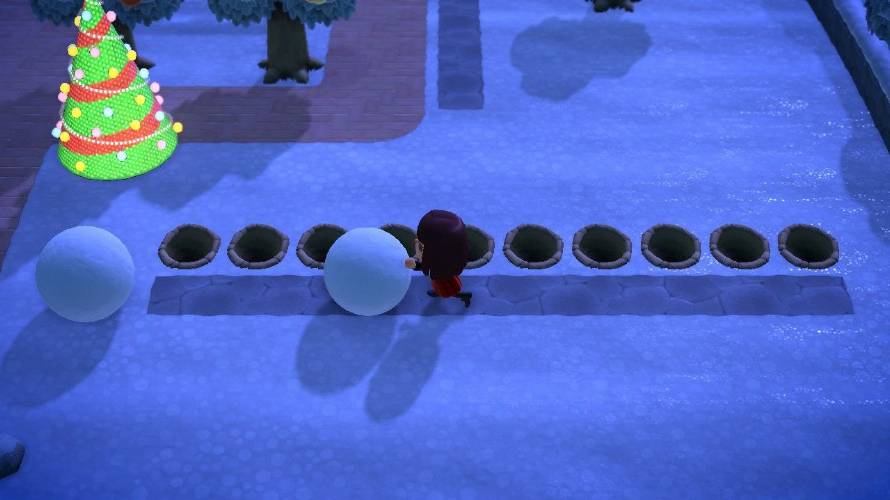 Basta infatti fare in modo che le due palle di neve rotolino fino a raggiungere la loro dimensione massima e quindi aprire tramite Nook Phone l’app Modifica isola e preparare una striscia orizzontale composta da 10 caselle consecutive, costituite da un qualunque terreno diverso dalla neve (aiutandosi magari con delle buche per tenere il conto del numero di caselle). A quel punto, posizionando le due palle di neve agli estremi della striscia orizzontale, bisogna far compiere il percorso a una delle due: passando su un terreno diverso dalla neve, questa diminuisce nelle dimensioni, andando a costituire una testa dalle dimensioni perfette.
