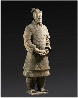 Nella versione falsa, il guerriero tiene stretta tra le sue mani una pala.