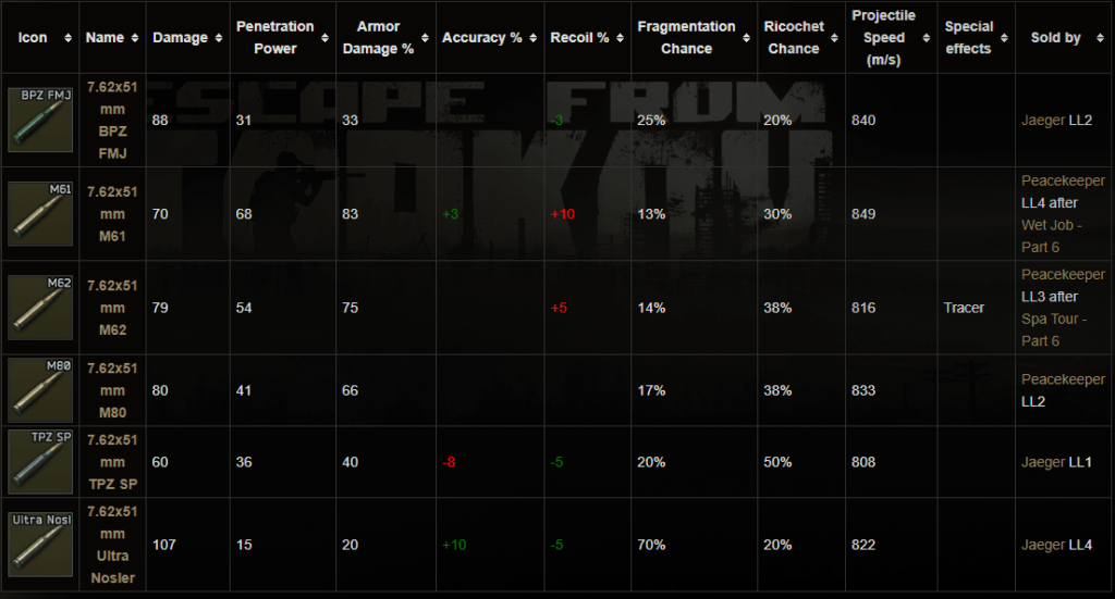 In questa guida vengono specificate quali sono le migliori munizioni calibro 7.62×51mm per Escape From Tarkov.