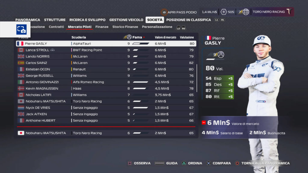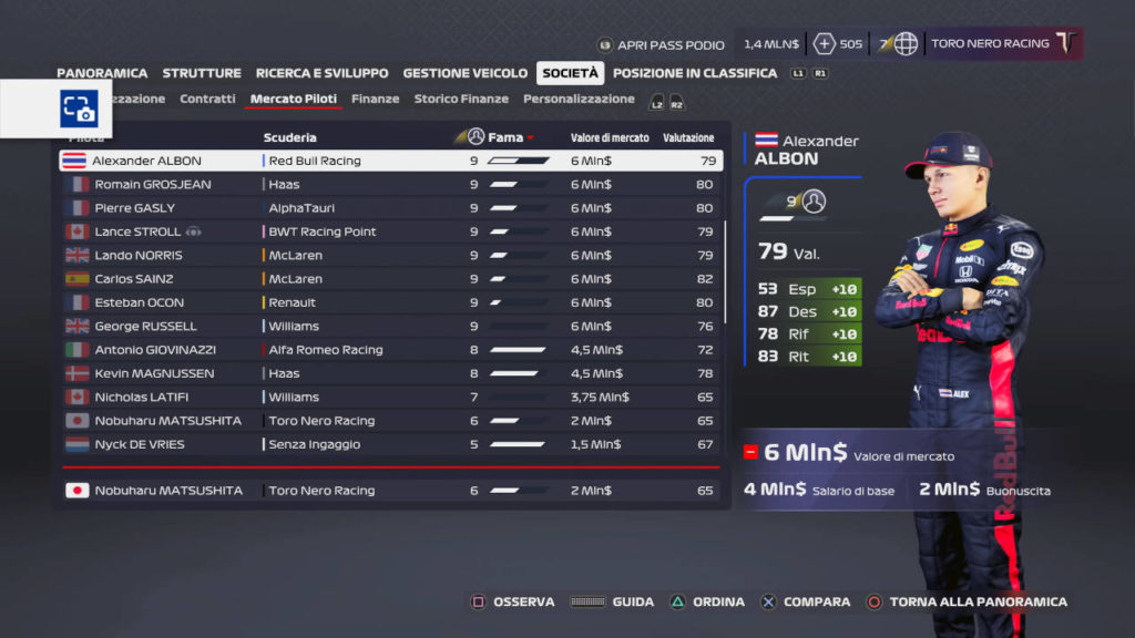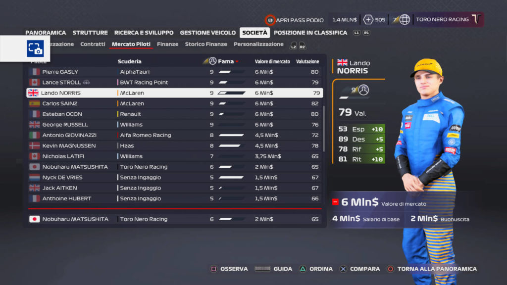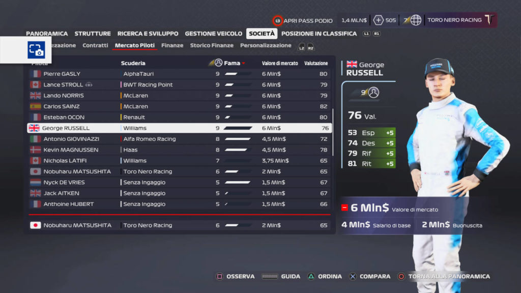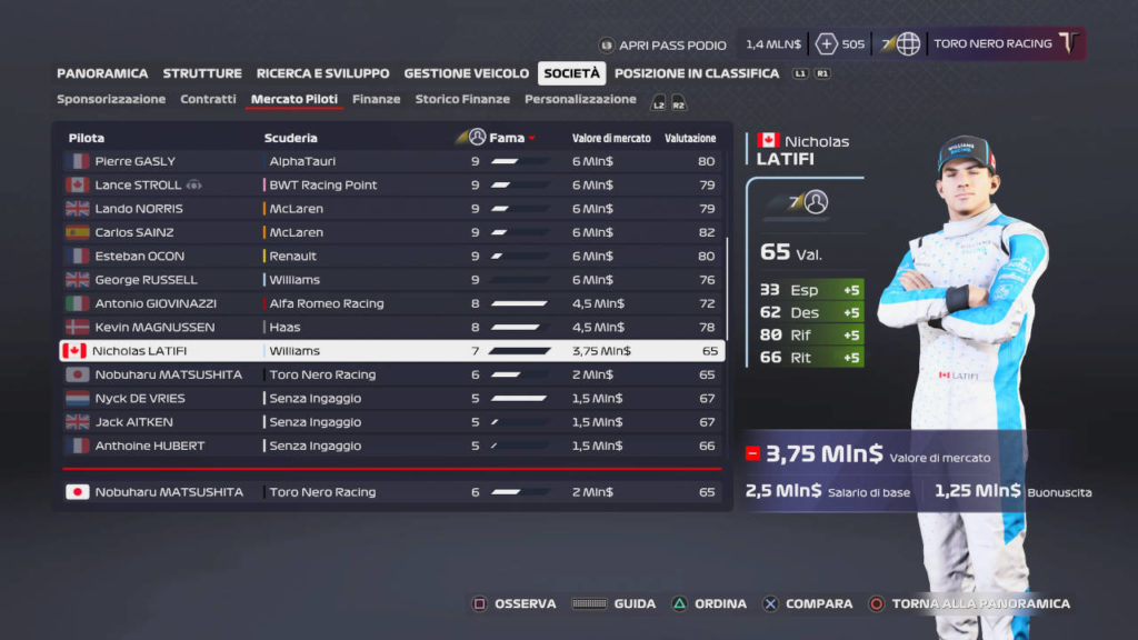 All’ultimo posto della classifica troviamo il giovane pilota canadese classe 1995 che ha esordito proprio durante il finale della scorsa stagione in F1. Le sue statistiche in game rispecchiano esattamente quanto detto e non potrebbe essere altrimenti: Latifi, in ogni caso, può risultare una delle alternative più azzeccate a inizio carriera.