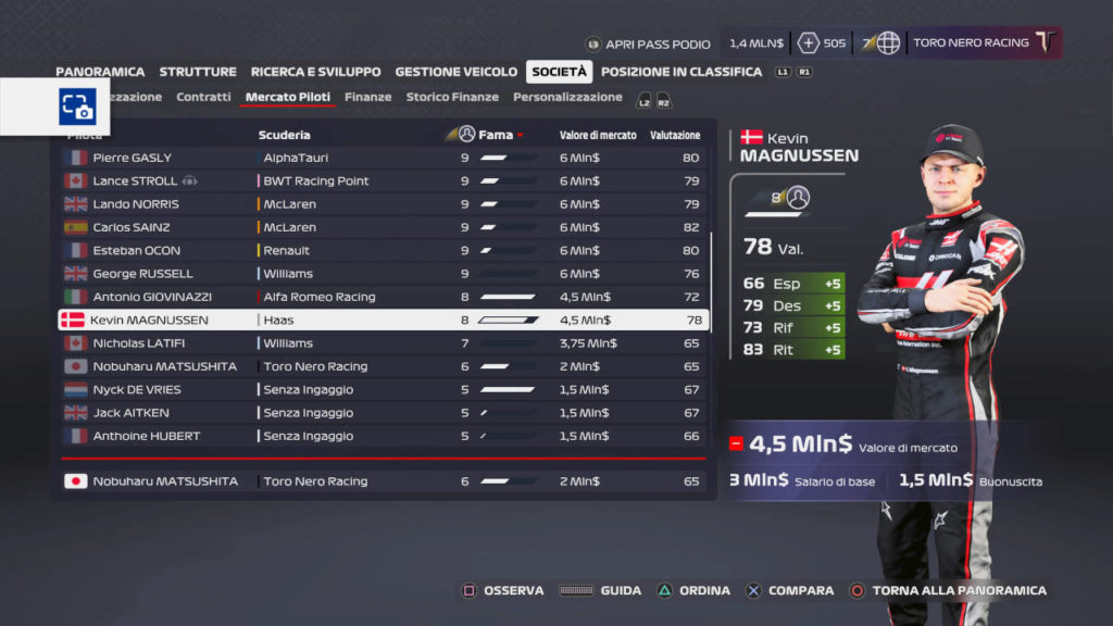 Posizione 17 – Kevin Magnussen, Haas F1 Team, Ovr. 78