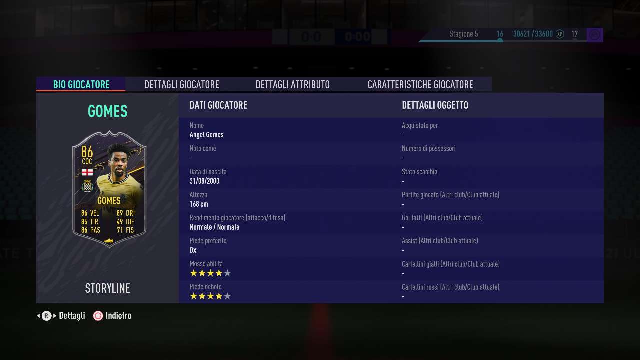 La scelta più indicata della prima ondata di Storyline della Season 5 di FIFA 21 è decisamente quella che cade su Angel Gomes, il centrocampista offensivo del Boavista di nazionalità inglese. Vuoi per le sua stats, molto complete seppur non eccellenti, ma anche per il fatto ibridabilità, il giovane trequartista è sicuramente la scelta più indicate delle ricompense di Livello 15, seppur non si tratta di un campionissimo. Le sue doti migliori sono sicuramente il dribbling e il passaggio, ma con quel workrate medio medio lo rende un giocatore decisamente molto “manuale” e, dunque, sta al giocatore imparare a sfruttarlo come si deve.