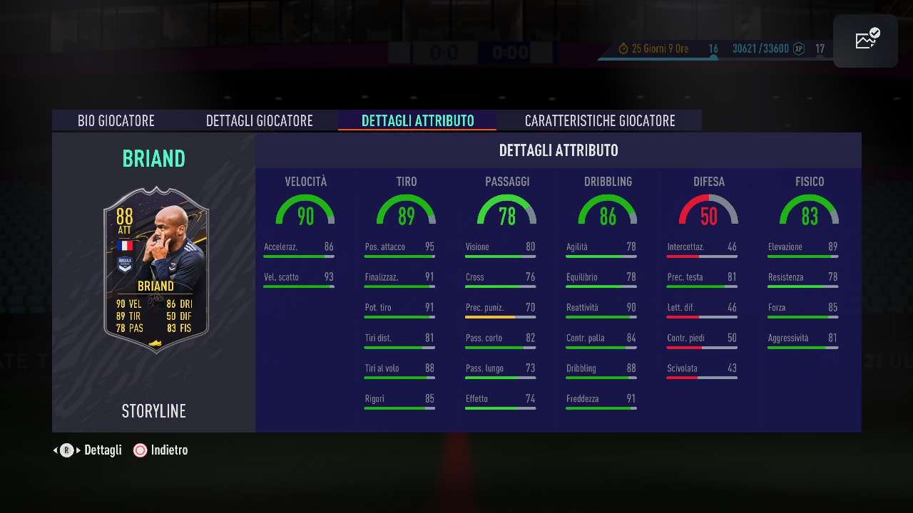 La seconda opzione di questo tutt’altro che “goloso” parco di giocatori è quella dedicata a Jimmy Briand, la punta francese in forze al Bordeaux. Considerando anche la nazionalità del giocatore e soprattutto anche il suo campionato di appartenenza, Briand può risultare una valida scelta per ibridare il team, ma in game potrebbe non essere esattamente un “treno”. A frenarlo sono l’agilità e l’equilibrio che, uniti ad un body tipe molto massiccio, lo rendono un giocatore troppo macchinoso e difficile da utilizzare in area di rigore. A ciò si unisce anche la limitazione delle stelle skill, “soltanto” 4 che lo appesantiscono ancora di più e una resistenza tutt’altro che in d’indimenticabile. Per il resto, comunque, rimane un finalizzatore imponente, ma poco altro.