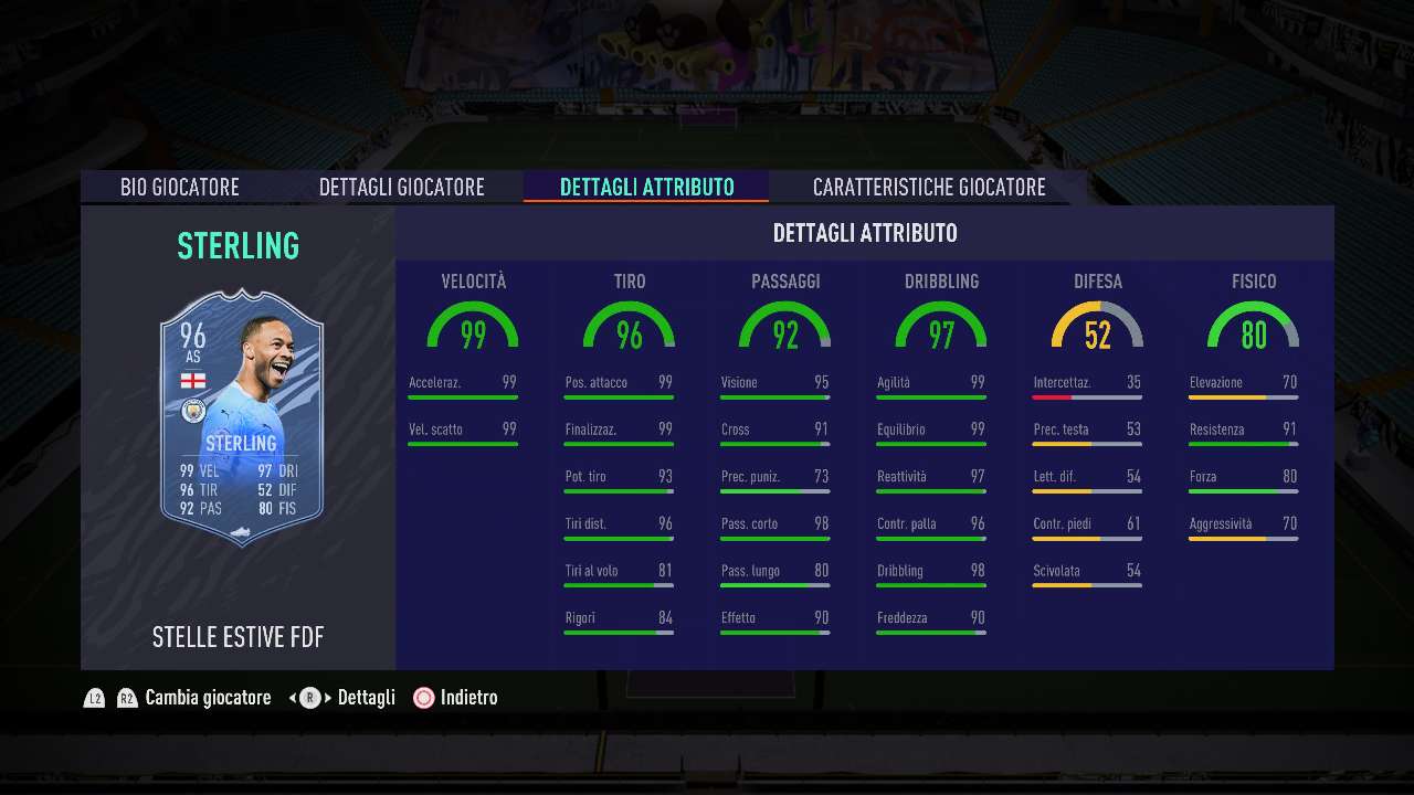 Posizione numero 2: Raheem Sterling (Ovr 96, Manchester City)