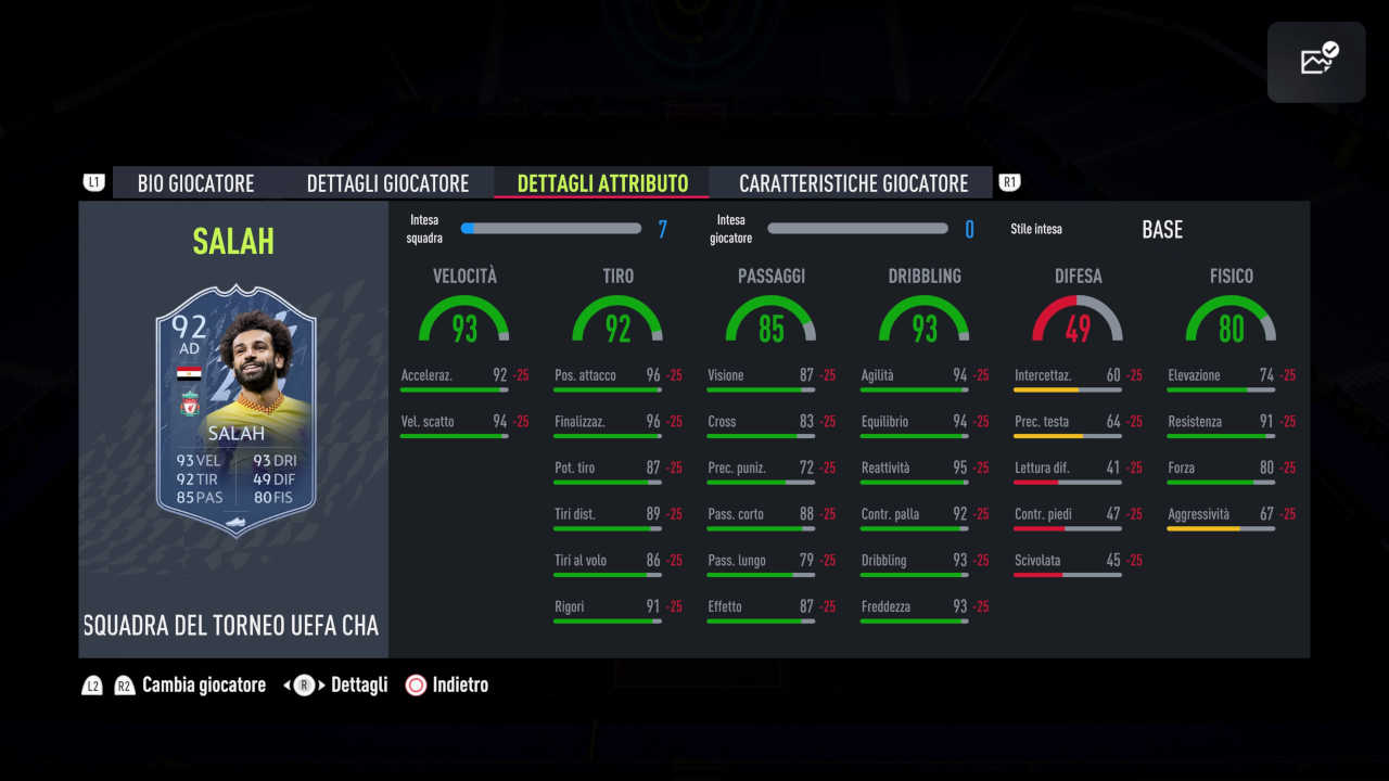 All’ultimo posto della nostra Top 5 troviamo lui, “Momo” Salah, uno dei giocatori più forti del panorama calcistico mondiale e tra i più forti in quel di FIFA 22. In questa versione, (ricordiamo che Salah ha già ricevuto ben due IF e la carta POTM) il giocatore raggiunge le stesse statistiche della sua versione migliore disponibile attraverso SBC (la carta giocatore del mese) ed è proprio per questo motivo che l’abbiamo messa all’ultimo posto. Per il resto, comunque, è impossibile non consigliare questa carta, specialmente contando il prezzo molto più basso rispetto alla carta POTM e che, in ogni caso, questa versione è disponibile sul mercato e, dunque, eventualmente rivendibile. Escludendo il solito “3” alla voce “Piede più debole” il buon Momo è veramente imprendibile e finalizza praticamente tutto (col sinistro, attenzione!) ed è praticamente perfetto per un team Premier. Consigliatissimo!