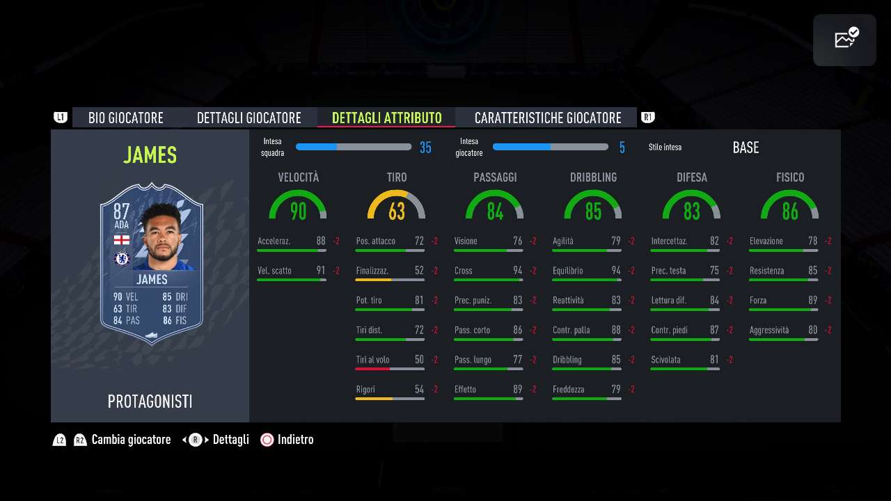 Headliners Team 1, Posizione numero 5: Reece James, Chelsea, ADA, Ovr 87