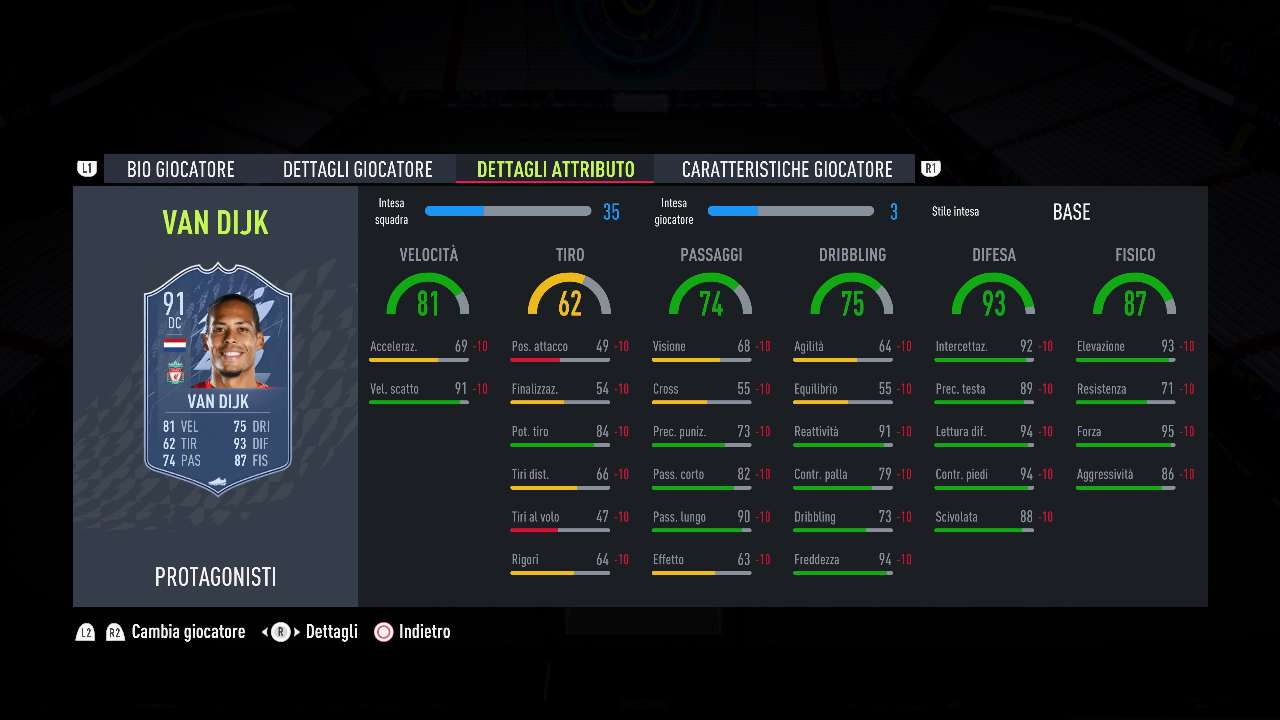 Headliners Team 1, Posizione numero 3: Virgil Van Dijk, Liverpool, DC, Ovr 91