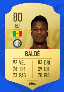 Di ritorno dalla poco fortunata parentesi francese nel Monaco, l’ex laziale Keita prova a far nuovamente fortuna nel nostro campionato, con la maglia dell’Inter. Sul piano della velocità non ha molti rivali (92), sostenuta un ottimo Dribbling (83) e da un discreto Tiro (76). Resta però un giocatore scarsamente consigliato a causa di un valore di Difesa veramente troppo basso (29) per il ruolo in cui gioca. Consigliato soltanto per chi ama la velocità ed adotta uno stile offensivo.