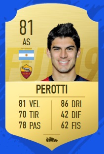 L’argentino della Roma è un grandissimo talento (86 Dribbling, 78 Passaggi), ma mostra il fianco a diverse lacune fisico-tattiche (62 Fisico, 70 Tiro) che ne abbassano notevolmente l’appeal. Se siete alla ricerca di un ottimo assist-man, piuttosto che un finalizzatore incallito, però, potete sicuramente puntare su di lui, grazie anche ad un prezzo veramente contenuto.