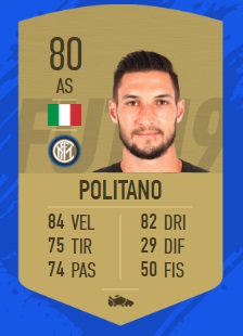 La seconda posizione è dettata più che altro dallo stupore provato nell’utilizzare questo giocatore. Acquistato ad inizio avventura in quel di Ultimate Team ad un prezzo bassissimo, Matteo Politano si è rivelato un giocatore strepitoso, letale sotto porta e bravissimo nel supportare i compagni di squadra. Se si escludono Difesa (29) e Fisico (50) il resto dei valori indicano un talento importante in fase offensiva che, credeteci, si conferma sul campo nel migliore dei modi. Probabilmente il migliore nel ruolo, per qualità-prezzo, e non solo. Se solo non ci fosse…