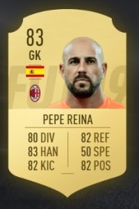 L’estremo difensore del Milan e della Nazionale spagnola è sicuramente un ottimo elemento a cui affidare i vostri pali in quel di Fifa Ultimate Team 19. I parametri del giocatore sono discretamente elevati, ad eccezione però del tuffo, fermo “solo” ad 80, che rende il portiere spagnolo alquanto vulnerabile nei tiri da fuori area. Il nostro consiglio, quindi, è quello di ingaggiare Reina soltanto se si gioca con una difesa alta e che, quindi, costringe gli avversari ad entrare il più possibile in area, per evitare di rimanere scoperti sulle conclusioni dalla lunga. Anche in questo caso, ci sentiamo di consigliarvi la carta Guanto per aumentare, in particolare, il parametro tuffo che, come dicevamo in precedenza, è alquanto modesto.