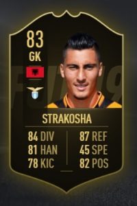 Non fatevi spaventare dal fatto che si tratta di una carta speciale: il prezzo di questo giocatore, in versione IF, è piuttosto contenuto e, credetemi, ne vale assolutamente la pena. Thomas Strakosha, giovane portiere della Lazio, è un ottimo estremo difensore anche in versione “base”: nonostante un overall modesto (80), il portiere presenta degli ottimi parametri (specie in versione speciale), che gli garantiscono un posto all’interno della speciale classifica dei migliori estremi difensori del nostro campionato.