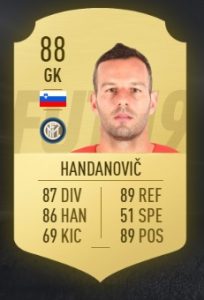 Inutile girarci intorno: se la vostra squadra di Fifa Ultimate Team 19 è basata sulla nostra Serie A, non potete saltare questo step. Prima o poi, a costo anche di conservare pochi spiccioli per volta, l’estremo difensore della vostra porta dovrà, per forza di cose, essere lui: Samir Handanovic, uno dei più forti portieri e giocatori dell’intero gioco. Ogni descrizione è alquanto futile, il giocatore eccelle in praticamente ogni aspetto, ma stranamente a volte (almeno nel nostro caso) si è reso protagonista di alcune uscite alquanto inspiegabili, magari però imputabili a problemi legati all’IA del gioco e non all’atleta in sé. Costa tanto, e tanti crediti per un portiere potrebbero sembrare sprecati, ma, fidatevi, non vi pentirete nemmeno per un secondo dell’acquisto!
