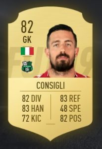 Con ogni probabilità lui è l’outsider più rilevante di questa speciale classifica. L’estremo difensore del Sassuolo salta subito all’occhio per via di parametri molto elevati per il prezzo di mercato, e, più in generale, per un overall comunque modesto. In campo, poi, Andrea Consigli (lo abbiamo utilizzato per almeno 15-20 gare) si dimostra molto attento e raramente si rende protagonista di svarioni o errori vari. Attento, affidabile e veramente economico: probabilmente il miglior portiere a basso costo della nostra Serie A. Il nostro consiglio è quello di utilizzare uno stile intesa Muro, capace di superare il 90 in parametri come presa e tuffo.