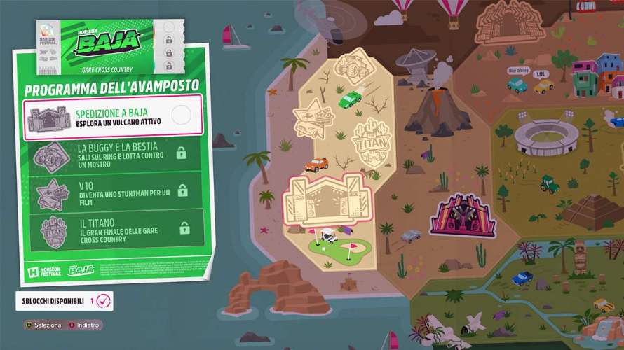 Non appena muoverete i primi passi nel Messico creato da Playground Games, avrete un primo sblocco disponibile dopo aver terminato le prime ed uniche gare che vi verranno proposte. Dopo aver terminato questa prima fase guidata sarete liberi di fare ciò che volete e per poter proseguire nel corso delle diverse esibizioni avventura bisogna rispettare alcuni criteri. Sarà presente una barra di completamento con il quantitativo di punti necessari al fine di ottenere un nuovo sblocco avventura.