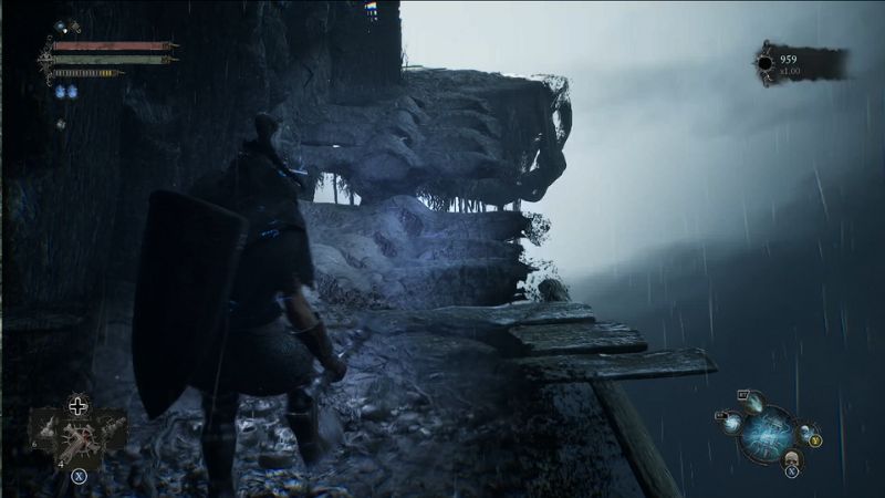 Salite lungo il sentiero formato dalle ossa di un drago e raggiungerete una piccola area con nemici. Dopo averli sconfitti, continuate a lungo l’arto del drago per recuperare uno Scudo con Occhio Pallido.