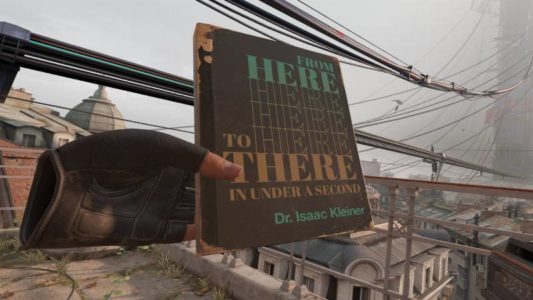 “From Here to There in under a second” del Dr. Isaac Kleiner si trova sul balcone all’inizio di Half-Life: Alyx. Il dorso di questo libro è visibile in Half-Life 2, e ovviamente si riferisce a Kleiner, il noto scienziato che sperimenta il teletrasporto nei titoli precedenti.