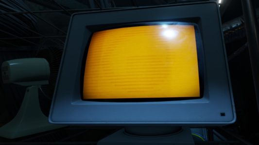 Basta sollevare lo sguardo per notare un monitor CRT con il logo arancione della Black Mesa come salvaschermo.