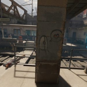 Più tardi, usciti per combattere il blocco di Combine, non si potrà non notare questo grazioso graffito di una torretta di Portal che esprime il suo affetto per noi.