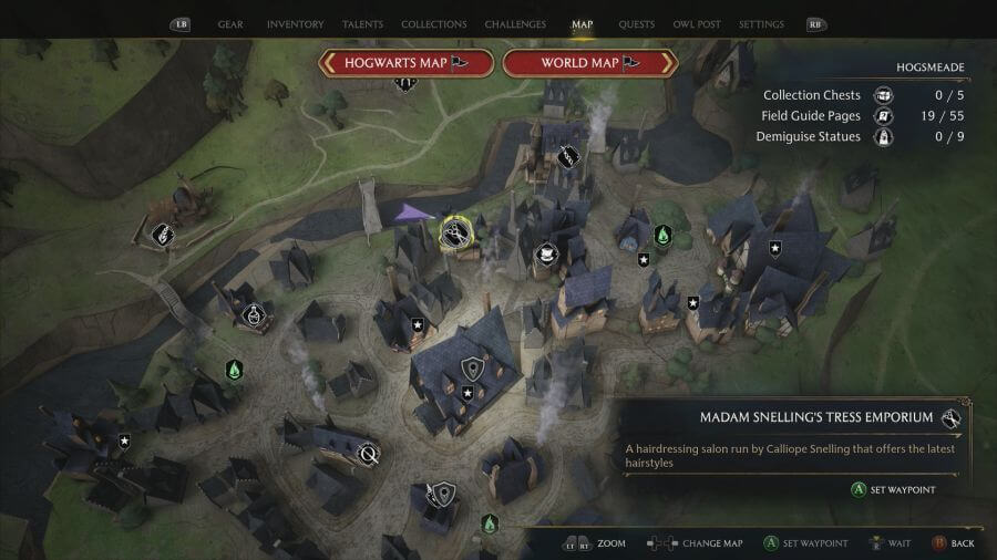 Allora, partiamo dal “dove”. Ad un certo punto durante la tua run di Hogwarts Legacy ti verrà assegnata una quest, “Benvenuti ad Hogsmeade”, nel quale, con un amico o un’amica, visiterete il piccolo villaggio. Qui è possibile visitare l’Emporio dei Tessuti di Madame Snelling, indicato da un’icona di forbici nella mappa del luogo.