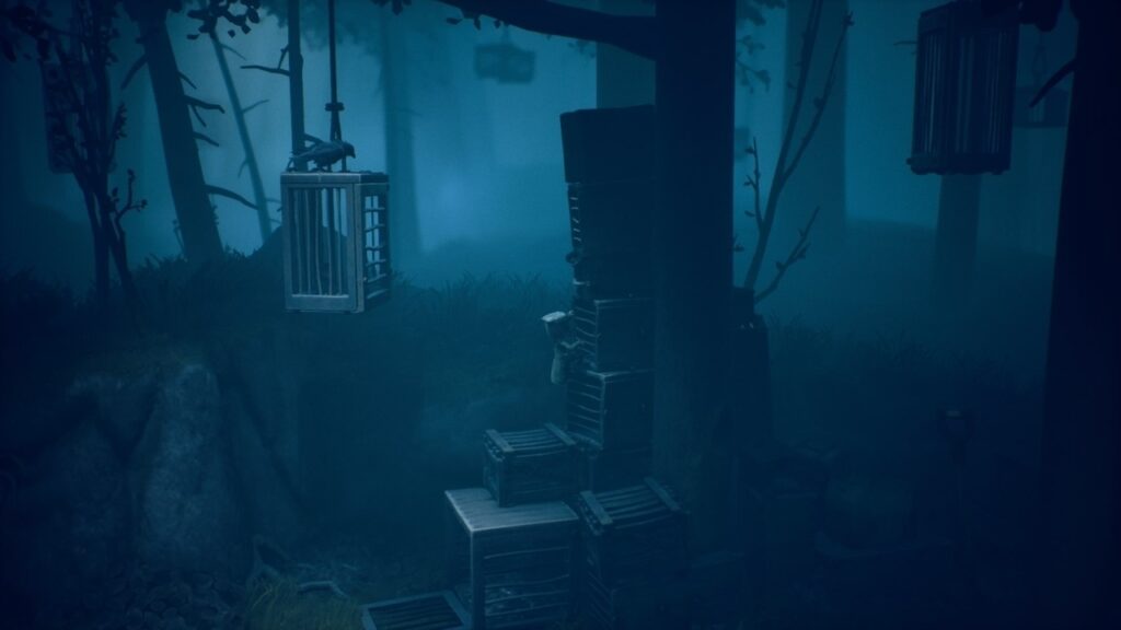 Dopo essere scappati per la prima volta dal cacciatore e aver superato il ponte rotto con l’aiuto di Six, vi ritroverete davanti a una pila di gabbie; saliteci sopra e arrampicatevi sulla pila in cima, dopodiché saltate sulla gabbia appesa all’albero, arrampicatevi sulla sua sommità e saltateci finché non cadrà al suolo. La porta si aprirà automaticamente e all’interno troverete il cappello giallo.