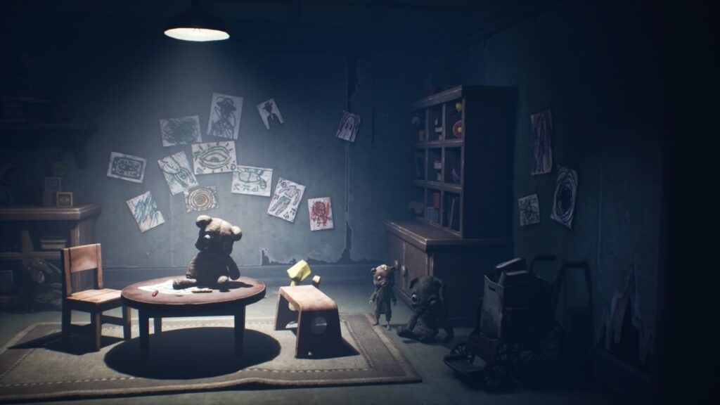 Superate la stanza con l’apparecchiatura per i raggi X e arriverete in un’altra stanza con un tavolo al centro con sopra un grosso peluche e dei disegni alle pareti. Arrampicatevi sopra il mobile sulla parete destra e sulla sua cima troverete il cappello.