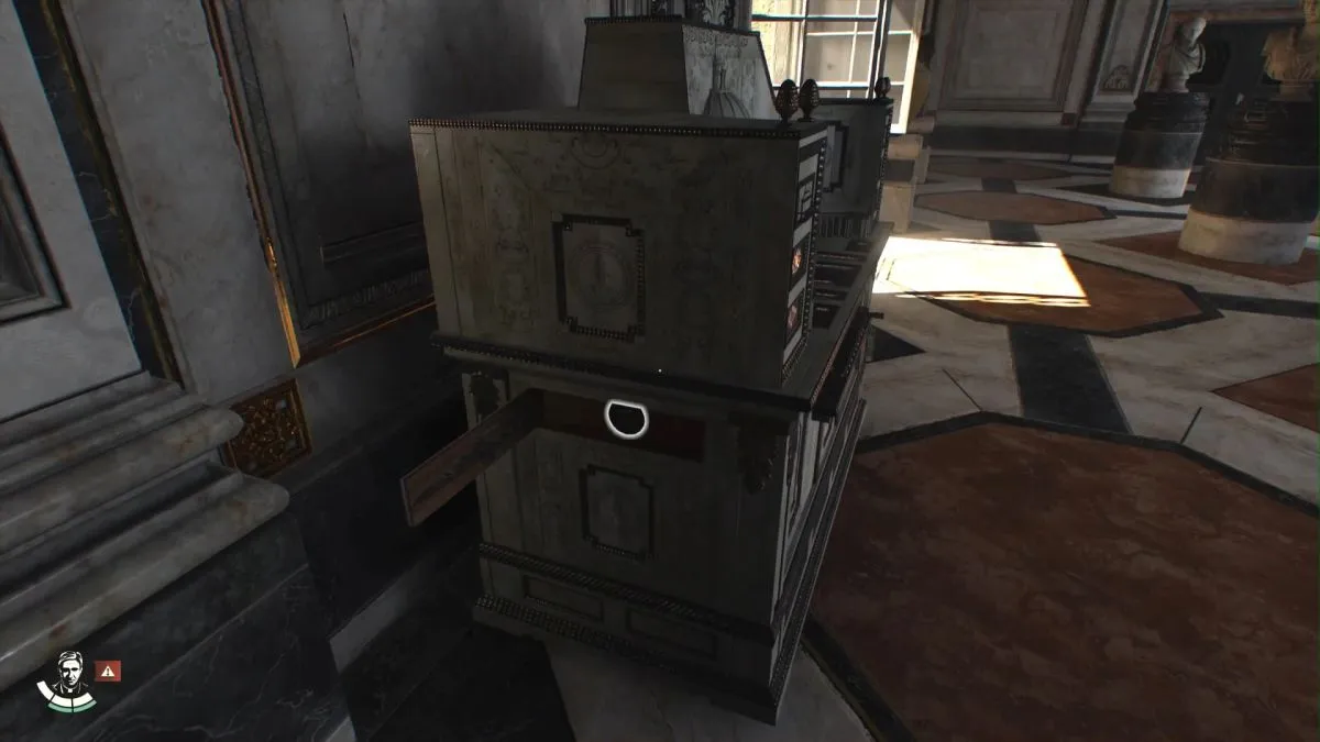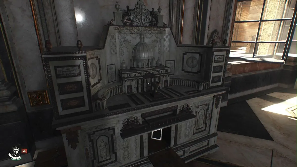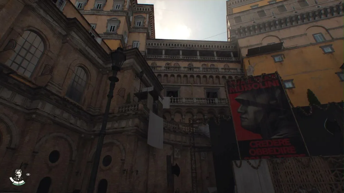 Con l’open-map sbloccato per questa zona, dirigiti alla piazza principale “Cortile del Belvedere”. Da qui potrai vedere un poster gigantesco di Mussolini su una sorta di palco. Vai dietro il palco e inizia a scalare l’impalcatura presente dietro il palco per raggiungere il balcone della residenza in alto. Appena scavalcherai la finestra, ti troverai davanti una riproduzione della Basilica di San Pietro, che si tratta appunto del mistero Casa del Signore.