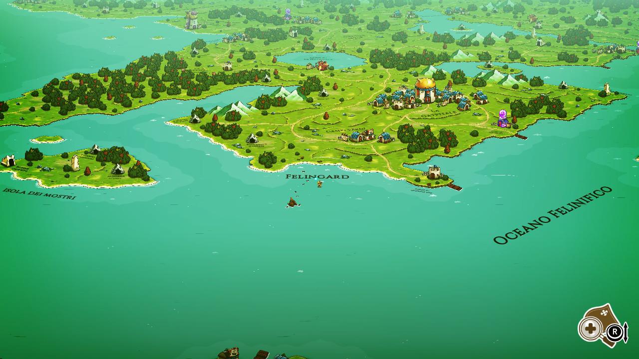 Vi occorrerà innanzitutto aver sbloccato l’abilità per camminare sull’acqua. Una volta ottenuta dirigetevi alla Gatpitale e proseguite a sud-ovest passando per Città del Miagolio, fino a ritrovarvi sulla sponda verso l’oceano, ed esattamente dove il gioco ha avuto inizio dopo il vostro naufragio.