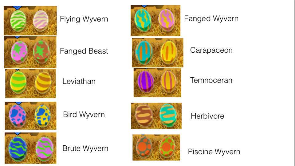 Le uova il cui nome accanto è generico per una specie, ad esempio “Bird Wyvern”, indica che il mostro che uscirà dall’uovo sarà appartenente a quella specie, anche se non si potrà predire quale effettivamente sarà. Nel caso di un uovo “Bird Wyvern” potremo quindi trovare un Gendrome, un Velocidrome, un Iodrome e così via.