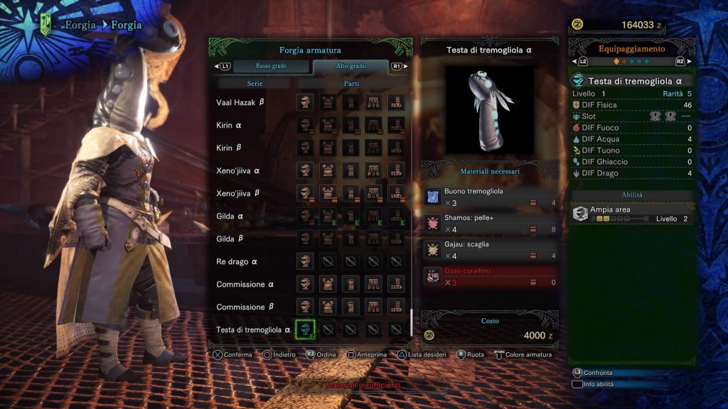 Queste creature sono abbastanza schive, pertanto utilizzate il mantello mimetico e usate la rete di cattura per acciuffarle senza dovervi preoccupare della loro fuga. Ne trovate molte nei pressi dell’Accampamento 1, scendendo verso sinistra, e qualcuna nelle immediate vicinanze dopo il cunicolo dell’Accampamento 12. Una volta terminata la missione riceverete il Buono Tremogliola. Ve ne serviranno 3, oltre a 4 scaglie+ del Gajau, 4 pelle+ dello Shamos e 3 Ossa coralline per realizzare l’elmo dell’immagine sottostante.