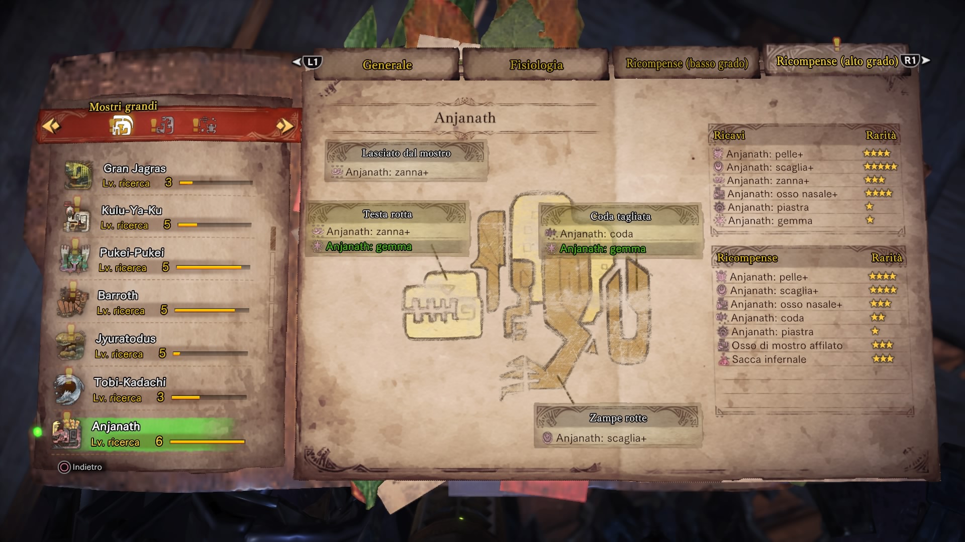Infine, vi riportiamo in queste due screen le ricompense che potete ricevere dal mostro a seconda di quali parti del corpo romperete.